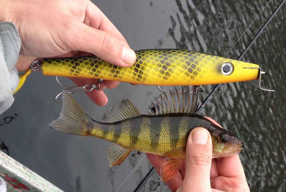 We did manage to get a picture of a swimmer I painted perch for an upcoming musky trip, and compared it to the real thing. Its not a perfect match, but it ain't too bad either.